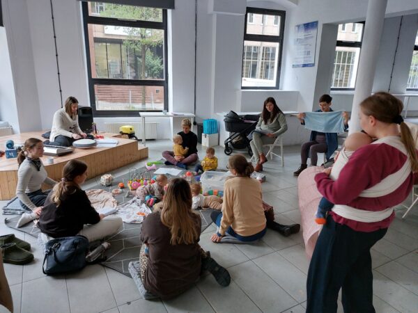 Pod okiem doświadczonej dyrygentki uczyłyśmy się śpiewać bez presji i ocen – z uważnością na ciało, oddech i emocje. Dzieci były naturalną częścią tych spotkań: obecne na rękach, w wózkach, na kocach, włączające się w muzykę na swój sposób. Ta codzienna bliskość i akceptacja tworzyły bezpieczną przestrzeń zarówno dla mam, jak i dla najmłodszych.